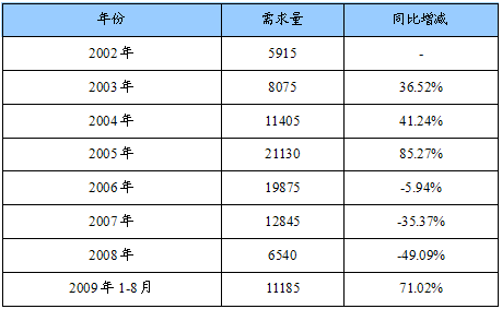 2002—2009年纺织 行业 电脑式恒温恒湿箱需求 分析 表