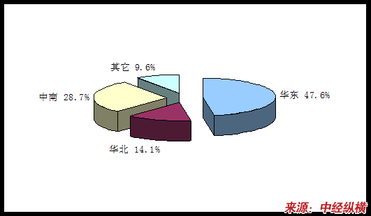 2009年我国电梯装潢需求区域结构分布图