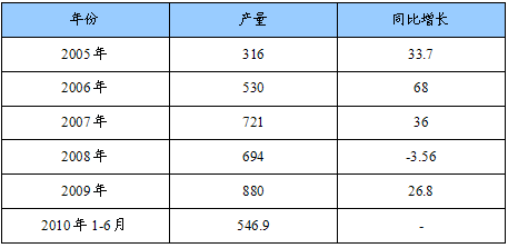 2005-2010年6月我国不锈钢产量增长情况