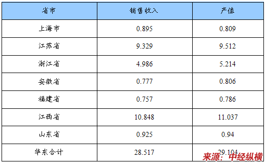 对于华东地区来说,上海和江苏电子产业的产值占整个地区的产值比重较大。