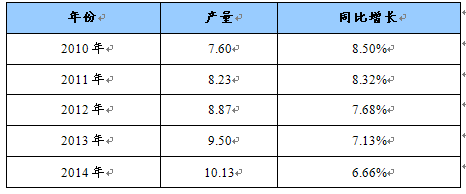 2010-2014年我国富马酸产量增长预测表 单位:万吨