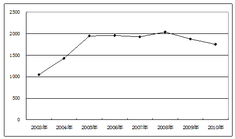 2003-2010年我国动态心电图仪进口平均单价统计图 单位:美元