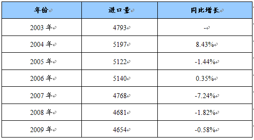 2003-2009年我国动态心电图仪进口数量及同比增长统计 单位:台