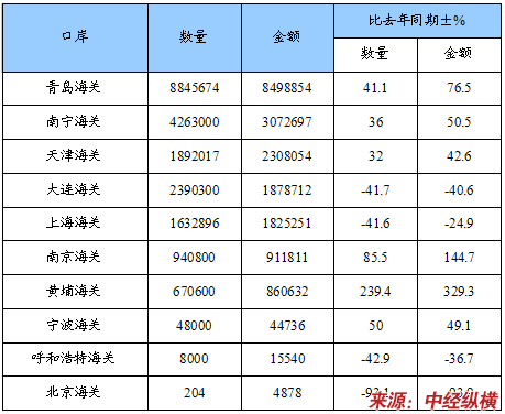 五、进口海关分布