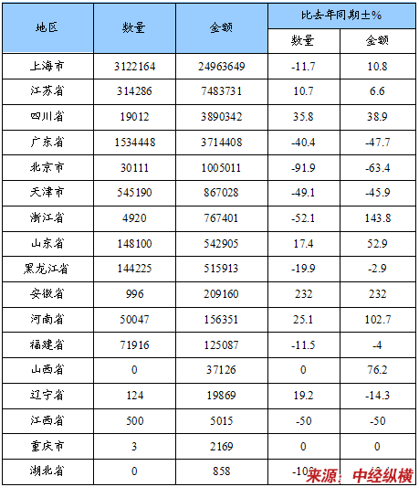 2011年中国磷脂出口货源地分布