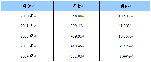 2010-2014年我国粉煤灰烧结陶粒产量预测表 单位:万立方米