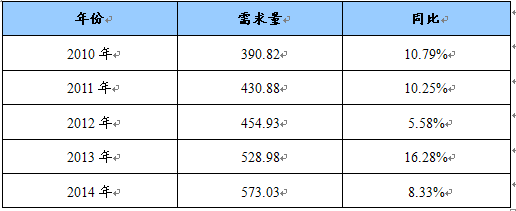 2010-2014年我国粉煤灰烧结陶粒需求量预测表 单位:万立方米