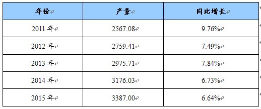 2011-2015年肝苏胶囊生产规模预测 单位:吨