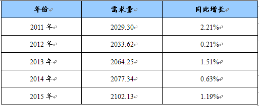 2011-2015年肝苏胶囊市场需求预测 单位:吨