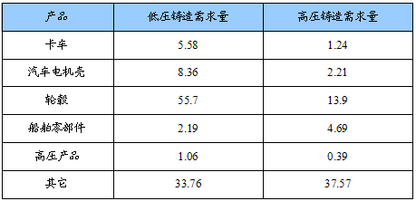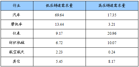 低压铸造、高压铸造细分产品用量