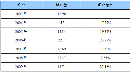 2003-2009年我国低压铸造进口量统计