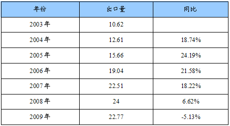 2003-2009年我国低压铸造出口量统计