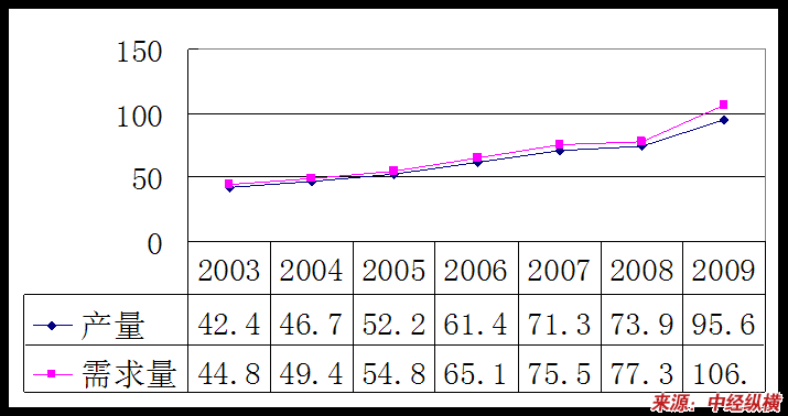 2003-2009年我国低压铸造件产量需求量对比图