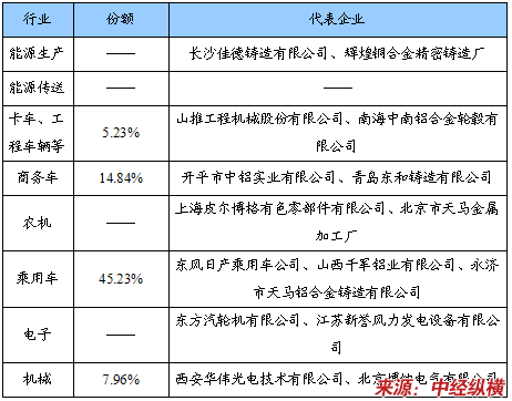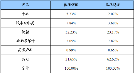 低压铸造、高压铸造细分产品份额