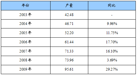 2003-2009年我国低压铸造件产量统计表