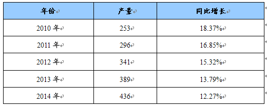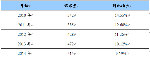 2010-2014年我国干冰需求量预测表 单位:万吨