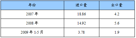 2007-2009年5月我国电池专用金属锂进出口量值