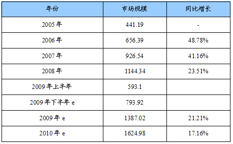 2005-2010年我国电动阀产品市场规模统计及预测表