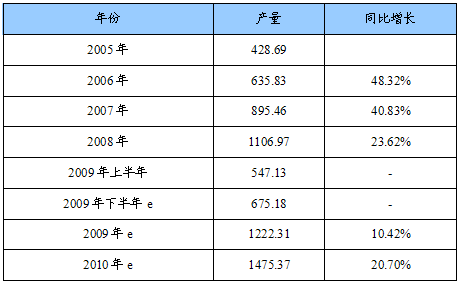 2005-2010年我国电动阀产品产量统计及预测表