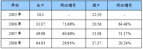 2005-2008年我国电动阀进出口量值统计