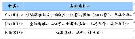 LED驱动电源主要由三大部分元件组成:主动元件、被动元件和机构零件。