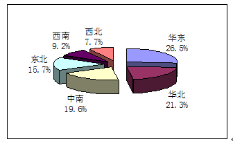 去白细胞滤器产品的消费市场分布与地区经济发展水平、医疗水平、人口密度等有密切的关系。从我国去白细胞滤器产品需求区域构成统计图中可以看出,华东地区比例最高为26.5%,其次是华北地区比例为21.3%。