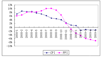 2008年—2009年CPI、PPI走势