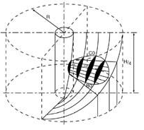 螺旋桨的叶面是螺旋面的一部分,如图所示,故任何与螺旋桨共轴的园柱与叶面的交线为螺旋线的一段。见图中的B0C0。若将B0C0引长并环线轴线一周,则其两端轴向距离等于比螺旋线的螺距H。