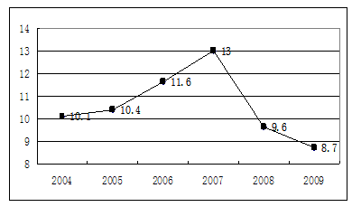 2005-2009年居民消费价格涨跌幅度 单位:%