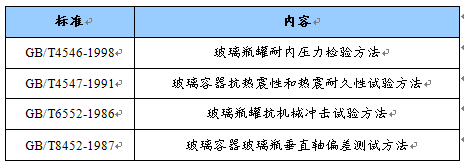 1、关于检验玻璃瓶的耐内压力、抗热震性和热震耐久性、抗机械冲击等方法国家有明确标准。