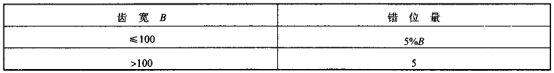 4)啮合齿轮的轴向错位量不得大于下表的规定。单位:mm