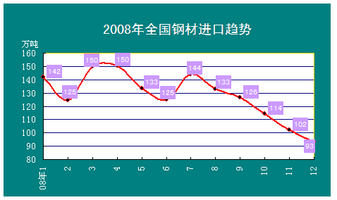 2008年全国钢材进口趋势