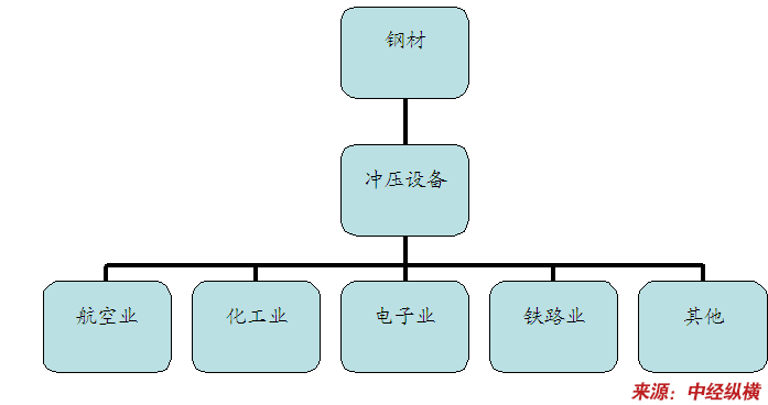 冲压设备 行业 包括上游原料生产和下游 行业 制造两大分支。上游原料主要有钢材等,下游 行业 非常广泛主要包括航空,军工,机械,农机,电子,信息,铁道和化工等多领域,相关企业达上万家。
