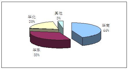 我国大陆地区液晶电视生产厂商主要分布于华东、华南及华北地区,其中华东约占有33%的比重;华南占44%的比重。主要是因为积极抢进此领域的IT企业、传统家电企业,基本上聚集于华东及华南地区,同时,华东及华南地区已经形成了一定的产业环境,上中下游产业链较为完整,成为众多厂商的首选之地。