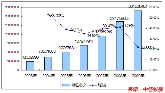 2003-2009年钢铁铸件 行业 销售收入发展状况