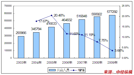 2003-2009年钢铁铸件 行业 从业人员发展状况