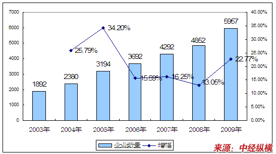 2003-2009年钢铁铸件 行业 企业数量发展状况