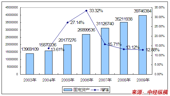 2003-2009年钢铁铸件 行业 固定资产发展状况