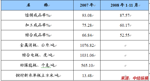 中国铜加工技术经济指标