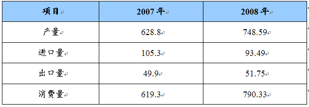 2007-2008年中国铜加工材产量与消费 单位:万吨