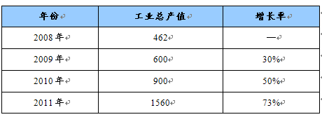 2009年,虽然金融危机对世界经济的影响很大,但是欧美等国际市场对大功率LED电源的需求量还是很大,相应的高端LED产品的出口量受金融危机影响较小。2011年中国LED照明 行业 产值已超过1560亿元,LED示范应用路灯、LED全彩显示屏显示器件、太阳能LED、景观照明、消费类电子背光、信号、指示等应用仍然是主要应用领域。