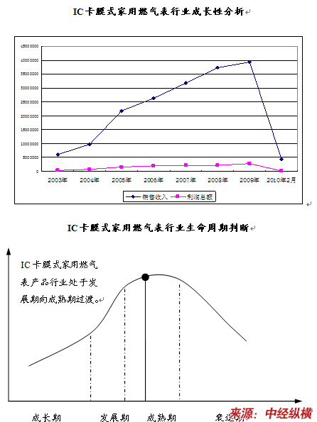 从我国IC卡膜式家用燃气表产品所属 行业 近几年发展情况来看, 行业 固定资产、销售收入、利润总额呈增长趋势,目前 行业 发展已经逐渐向成熟期过度,增长速度将有所减缓。