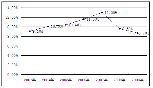 2003-2009年我国GDP增长变化情况