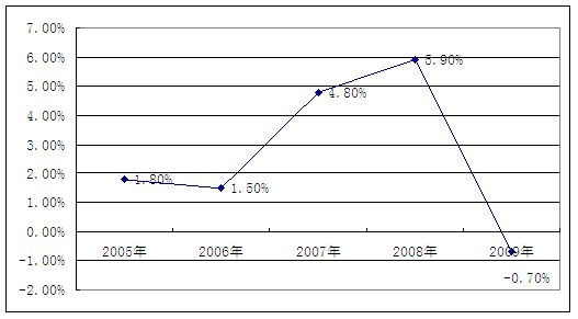 2005-2009年我国CPI指数同比增长变化情况