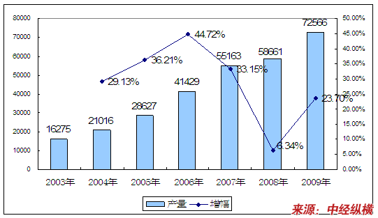 2003-2009年中国冲压设备市场产量 分析