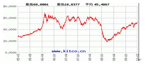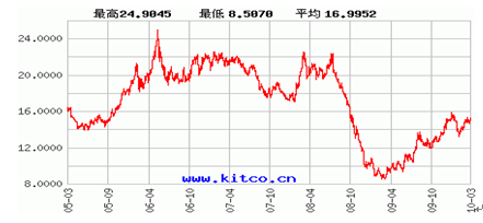 2005-2010年我国铜价格走势图 单位:元/公斤