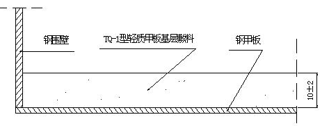 将已搅拌好的敷料敷设在钢甲板上,用泥板将敷料在钢板上来回搓动,使敷料充分接触钢甲板,然后用直尺将敷料刮平到所需厚度,经过30min左右,再用泥板压实,泥平,如表面稍干,可洒少量乳胶液再行泥平。