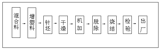 挤压成形是生产截面积小,径向长度大制品的好方法,可以连续批量生产,效率高。采用挤压工艺生产打印针主要工艺有混合料的制备,增塑料的制取,针坯的挤压、干燥及加工,增塑剂的脱除,针坯的烧结和检验等。