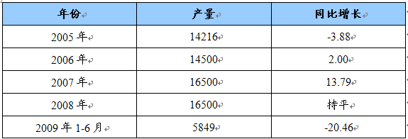 2005-2009年我国硬质合金产量情况 单位:吨,%