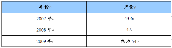 2005-2009年我国金刚石产量情况 单位:亿克拉